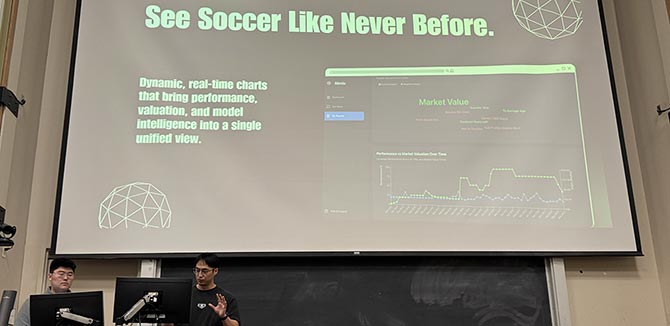 Shio, Tony, and Zeyu won the 2025 hackathon, which was sponsored by the Chicago Fire of Major League Soccer. The team challenged students to take a public soccer dataset that contained transfer data, player valuations, and match event data and in 48 hours develop solutions predicting player valuations, identifying breakout candidates, and analyzing player development trajectories. The competition was open to students across Northwestern. The winning team will tour the team’s performance center and receive tickets to a home game next season at Chicago's Soldier Field.