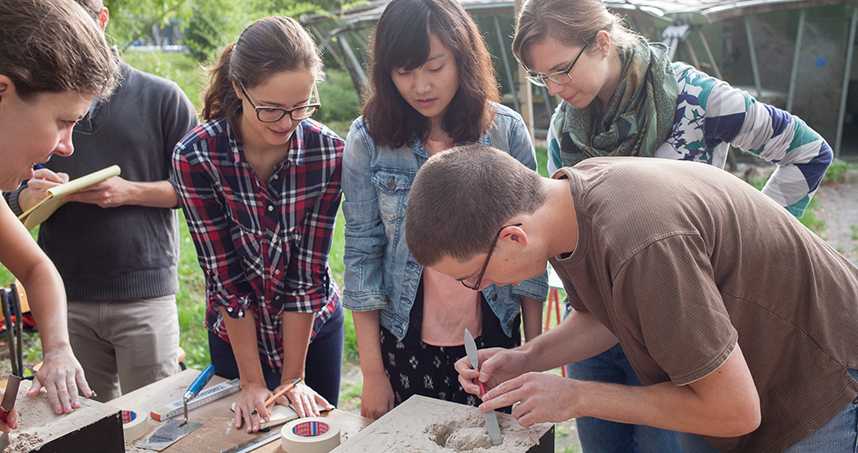 The five days were filled with architectural tours, museum visits, and hands-on design activities with the University of Stuttgart’s Institute for Lightweight Structures and Conceptual Design (ILEK). Led by renowned structural engineer and ILEK director Werner Sobek, students studied formwork and surface techniques for concrete structures. In the end, they were able to use their new knowledge to design and build a concrete catenary arch, as made famous by Catalan architect Antoni Gaudi.